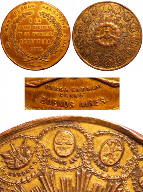 Medalla conmemorativa del Pacto de Unión Nacional, 1860, grabado en Buenos Aires por Pablo Cataldi (Colección del Archivo y Museo Históricos del Banco de la Provincia de Buenos Aires